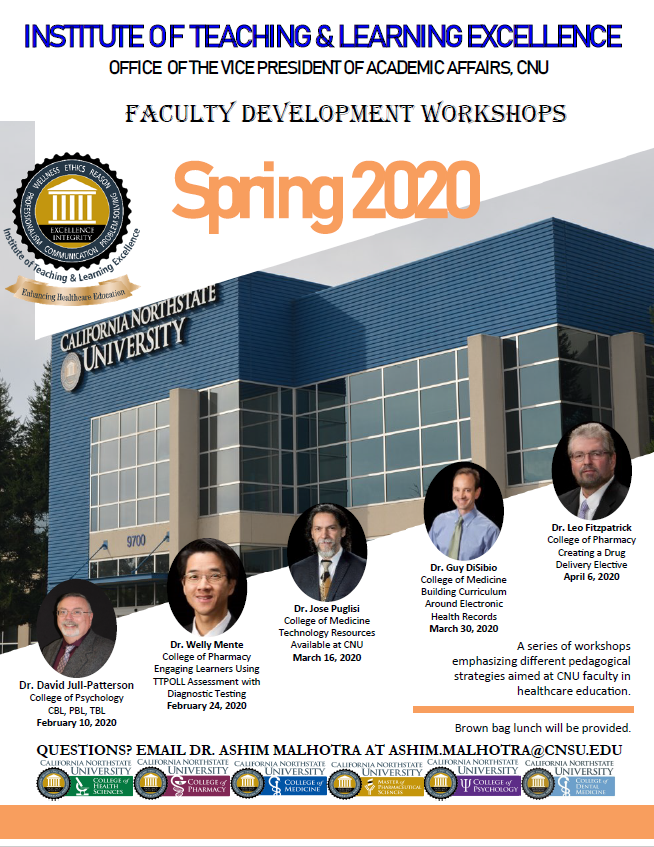 Venue: Virtual sessions through Zoom. Questions? Please email Dr. Ashim Malhotra, ITLE Director.